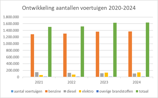 Ontwikkeling van aantal voertuigen per brandstofsoort